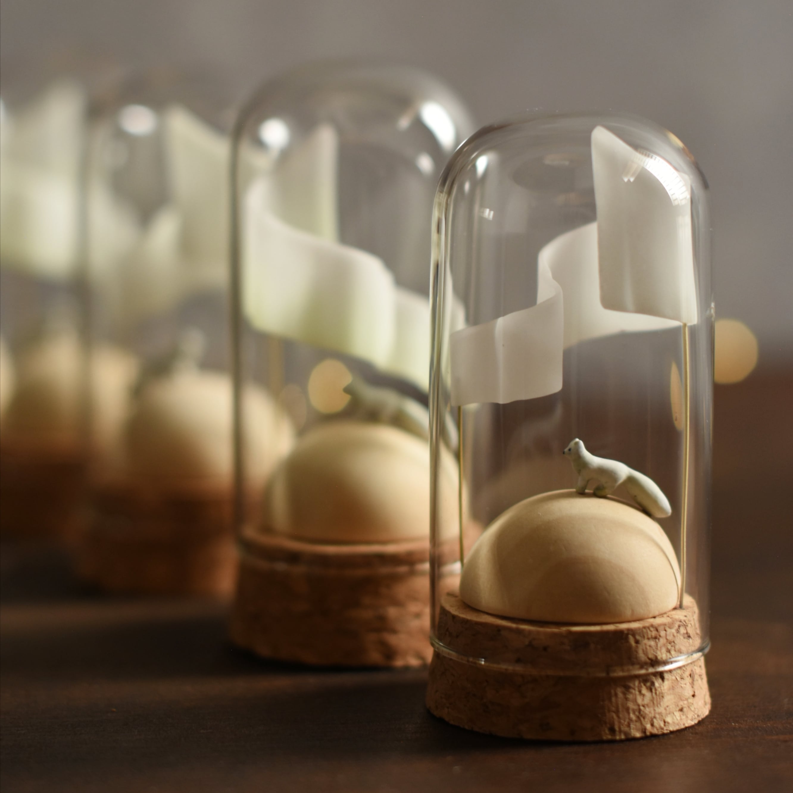 ✳ガラスドームは市販の物を使用してるので、コルクが欠けてたり、ガラスに傷がある場合がございます。少しレトロな風合いとしてお楽しみ下さいませ。