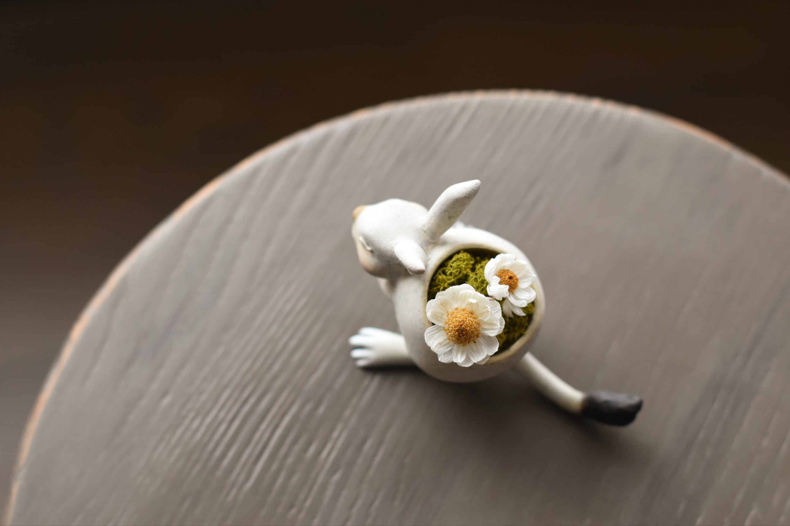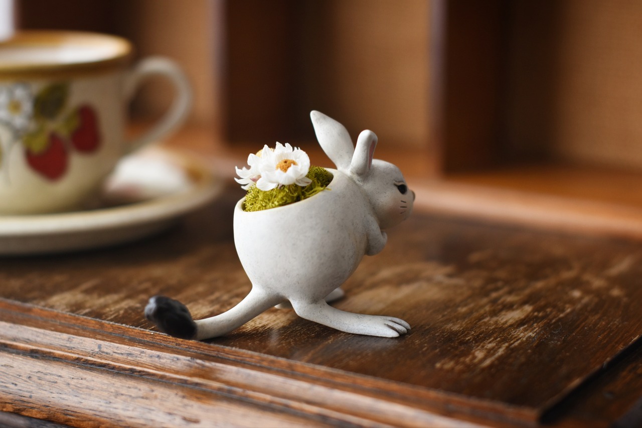 そんな愛嬌たっぷりのトビウサギさんを小さなオーナメントポットにしました。
